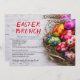 Este design elegante para os feriados apresenta ovos de Páscoa pintados de forma colorida em um ninho de pássaros em tábuas rústicas de madeira branca. Personalize editando o texto nas caixas de texto para seus convites personalizados para o brunch ou almoço de Páscoa.