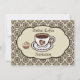 Copo de café e bolo em um Chá de panela monograma de fundo úmido.