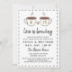 Encantador convite para chás de casamento de casal com dois copos de café com um coração cor-de-rosa entre eles. Adicione suas iniciais aos copos. O amor está se formando em um encantador roteiro de pincel. Adicione o texto do convite e as informações em uma fonte legal, em preto contra um fundo branco.