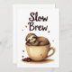 Esta adorável preguiça relaxando em uma xícara de café captura perfeitamente a essência da vida lenta e das vibrações dos amantes do café. É uma obrigação para os entusiastas da cafeína com uma atitude calma.