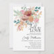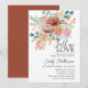 Celebre o amor com este lindo convite de chá de noiva em terracota e rosa beije, apresentando um arranjo floral em aquarela romântica em tons quentes de outono. Flores de rosa beije suave, acentos de terracota e folhagens delicadas criam um design sazonal elegante perfeito para chás de noiva de outono. Combinado com letra moderna e tipografia clássica, este convite é ideal para celebrações rústicas, boho ou inspiradas em jardins.