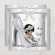 Afro-americano Elegante e Chá de fraldas Bonito, com Baby Girl em calçado de alto salto. Sobreposição de fundo em losango, Cinza de prata, brilho branco, Chá de fraldas Bonito e bonito, convite para bebê, nova menina CLIQUE em "ler mais" para produtos correspondentes! Zizzago criou este design. POR FAVOR, OBSERVE todas as imagens planas! Eles não têm brilho real, joias de diamantes ou Arcos reais!