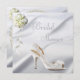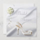 Convites de chá de panela elegantes e na moda com um calçado de casamento branco de moda de uma linda noiva com design de rosas bonito e um buquê de rosas brancas adorável com fita sobre um fundo fotográfico de matéria de seda branca. Estes convites glamourosos são decorados de ambos os lados. Lindos, quentes, modernos convites com uma sensação vintage. Perfeito para primavera, verão ou chá de inverno. ©Hazel Kinvig-Paul www.design-a-dream.co.uk NOTA: Todos os produtos do Zazzle têm imagens impressas em formato plano. Texto, fonte e cor da fonte são todos personalizáveis. Se precisar de ajuda para personalizar seu produto, entre em contato comigo pela loja e terei todo o prazer em ajudar.