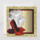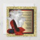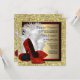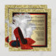 Ouro preto elegante e calçados de salto alto vermelho qualquer convite de aniversário. O convite de aniversário vermelho de salto alto desta mulher é facilmente personalizado para o seu partido ou evento simplesmente adicionando os seus detalhes de eventos. Todo o texto pode ser alterado.