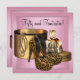 Cor-de-rosa elegante e 50º convites de festas de aniversários dourados. Este bonito calçado rosa e convite de aniversário dourado de alto salto leopardo é facilmente personalizado para o seu evento, simplesmente escolhendo o botão "Personalizar!" para começar a adicionar os detalhes do evento, estilo de fonte, tamanho de fonte e cor e texto. Observe que todos os adesivos, cartões e designs de convite que você encontrará no Zazzle são gráficos impressos sem joias reais, arcos, levantados, gravados, ou peças ou peças adicionadas.