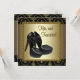 Os elegantes convites de festas de aniversários pretos e dourados da mulher. Este alto salto preto calçado preto preto preto e convite de aniversário dourado é facilmente personalizado para o seu evento, simplesmente escolhendo o botão "Personalizar!" para começar a adicionar os detalhes do evento, estilo da fonte, tamanho da fonte e cor e texto. Observe que todos os designs de cartas e convites que você encontrará no Zazzle são gráficos impressos sem joias reais, arcos, levantados, gravados em relevo ou peças ou peças adicionadas.