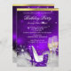 Calçados Roxos de Alto Céu, Convite de aniversário de Champanhe Dourado Prateado. Prata Roxa Elegante, ouro. Personalize com seus próprios detalhes e idade. Modelo para Sweet 16, 16, Quinceanera 15, 18, 20, 21ruas, 30, 40, 50, 60, 70, 80, 90, 100, Produto Fabuloso para Mulheres Adultas, Raparigas adolescentes, Zizzago criou esta design. ! Eles não têm brilho real, joias de diamantes ou Arcos reais!