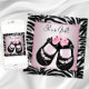 Adoráveis calçados pretos cor-de-rosa com rosebudos brancos, convites para chás de bebês-zebra rosa. Este doce convite para chá de fraldas zebra cor-de-rosa é facilmente personalizado para o seu evento, adicionando detalhes do seu evento, estilo de fonte, tamanho de fonte e cor e texto.