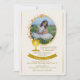Um convite de cor bege claro com uma delicada janela de foto de coroa floral. O cartão também apresenta um cálice de comunhão dourado com uma cruz e uma faixa dourada para o nome. (Vetor de fundo criado por freepik - www.freepik.com). (Pix). O cartão é fácil de personalizar com sua redação, fonte, cor da fonte e escolha de seis tipos de papel. Não é exatamente o que você está procurando? Todos os nossos produtos podem ser personalizados para atender às suas necessidades sem nenhum custo adicional. Basta entrar em contato conosco em askcottonlamb@gmail.com. Produtos coordenados disponíveis: