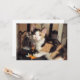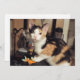 Esta carta plana mostra uma fotografia de um gato Calico em cima de um aquário de peixe. Sob sua pata está um peixe dourado e o olhar em seu rosto é chocante. Como se dissesse que é um "presente para você". Não se preocupe, o peixe é uma ilustração de aquarela e o gato é meu gatinho Sally...nenhum peixe foi ferido nesta foto.