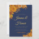 Caligrafia de ouro azul marinho com convite para casamento da Sun Flowers rústicaEste elegante convite para casamento da caligrafia moderna com design de flor de sol rústica em fundo de marinho azul d'água, excelente para casamento rústico moderno ou casamento da primavera à noite