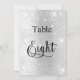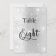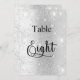 O número da tabela é escrito com um script de estilo elegante com letra manual. Letras negras, um fundo de prata sujo com poeira brilhante falsa, faíscas.