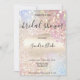 Consiga algum glamour para a sua festa de chá de panela com este belo convite de moda moderna e moda com o fundo holográfico e a letra caligráfica do arco-íris