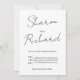 Caligrafia de roteiro branco em casamento de fotos brancas. Procurando um convite de casamento moderno e mínimo? Não olhe mais! Nosso elegante convite de casamento preto e branco mostra seus nomes na caligrafia de roteiro de na moda, em fundo branco. O verso do convite inclui uma foto do casal feliz.