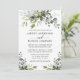 A Carta de Convite para Casamento de Mola de Caligrafia Moderna, com Elegante Watercolor Greenery, inclui folhas de eucalipto, folhagem botânica verde, folhas azuis empoeiradas e outros belos lençóis botânicos.