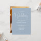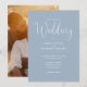 Este convite de casamento com letra elegante azul poeirento pode ser personalizado com todas as informações do seu casamento e foto especial no verso. Concebido por Thisisnotme©