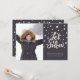Envie cartões de natal para a família e amigos com esta placa plana de Natal personalizável, com o texto 'Deixe-a nevar' em bela caligrafia, cercada por queda de neve em um fundo preto. Personalize adicionando sua foto e textos favoritos.