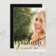 Foto do formando com camada gráfica personalizada de "formando" e ano de "classe de" editável. Convite de graduação opcional no verso; remova o texto do convite para criar o seu próprio anúncio de graduação em fotografia