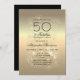 Luxo, elegante preto e ouro 50 e Fabuloso, 50 anos de convite com um único e sofisticado lugar floral de desenho artístico.
