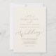Este delicado cartão de convite para casamento de creme de caligrafia de ouro é perfeito para um casamento moderno. A design romântica minimalista apresenta uma magnífica e elegante tipografia amarela ouro champanhe num fundo de creme de marfim com um aspecto simples e limpo.