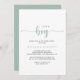 Esta caligrafia dourada é um convite para chá de fraldas de menino é perfeito para um chá de fraldas rústico ou borrão. O design simples e elegante apresenta a tipografia de scripts clássicos e de rico em verde e branco.