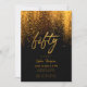 Um modelo preto e dourado, glama, moderno, elegante e chic do 50º convite de aniversário, com fundo negro de poeira dourada (efeito digital), a palavra "cinquenta" coberta de folha de ouro (este é um efeito digital também), roteiro de caligrafia moderno e tipografia em tons de ouro. Um design de eterno para uma mulher no seu quinquagésimo aniversário.