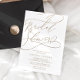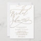 Essa caligrafia romântica de ouro florescente é perfeita para um simples chá de casamento. O clássico moderno design apresenta espirais de rico e turbilhões brancos com belíssima e elegante tipografia de folha de ouro de champanhe com letra falsa. Nota: Este design não apresenta folha de ouro real. É um gráfico de alta qualidade feito para se parecer com folhas de ouro.