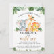 Um safari selvagem bonito temeu o primeiro convite de aniversário para uma menina com três animais cártaros de cor aquosa e folhagem ou verde-selva. A falsa palavra dourada 1 é removível.