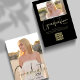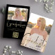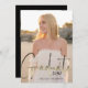 Este design apresenta um anúncio de convite para formandos, com um na moda, simples, perfeito para segundo grau ou formando universitário, com um roteiro de caligrafia dourada, 2 modelo fotográfico, minimalista, tipografia, um convite para o partido do formando, com um site de código QR