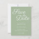 O texto da tipografia Save the Date é um belo estilo de caligrafia elegante contemporânea em branco contra sábio sólido. Adicione sua própria foto de noivado ao fundo, se quiser. Personalize a cor de fundo verde para corresponder à paleta de cores do casamento. Este elegante casamento da caligrafia, exceto o convite para a data, pode ser encontrado numa variedade de antecedentes decorativos.