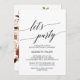 Este convite de caligrafia elegante | com fundo floral vamos festejar é perfeito para um evento de outono. O design apresenta uma tipografia romântica e caprichosa com um lindo buquê de flores rosa, marsala e burgundy no verso.