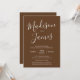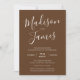 A caligrafia elegante é um convite minimalista e moderno para o casamento. Esta modelo apresenta seus nomes em caligrafia elegante no topo e todos os textos são pré-organizados para que você personalize fácil e rapidamente com suas próprias formulações para sua ocasião especial.