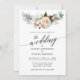 Roteiro de Caligrafia Moderno, Floral Botânico Elegante, Cartão de Convite para Casamento Verde inclui peões, lírios, algodão, folhas de eucalipto e outros belos verdes. Foto de volta.