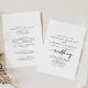 Esta caligrafia, um convite elegante para o casamento é perfeito para um casamento rústico. O design simples e elegante apresenta a tipografia de scripts clássicos e ricos em preto e branco. Salve o papel, incluindo mais detalhes na parte traseira do convite em vez de em uma placa de gabinete separada.