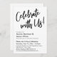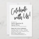 Neste design simples, as palavras-chave "Celebre conosco!" foram renderizadas em uma fonte de letra manuscrita e adicionadas como um arquivo de imagem gráfica. Todo o outro texto é editável e usa uma fonte versátil com serifa que você pode editar como quiser. O verso apresenta "Sr & Sra" na mesma fonte moderna; isso pode ser removido se você preferir ter apenas um fundo simples, ou desejar adicionar algo diferente. Todas as camadas foram adicionadas separadamente e deixadas desbloqueadas para lhe dar o máximo controle de design; edite esta aparência tanto quanto você precisar e por favor não hesite em entrar em contato comigo se você precisar de assistência com o processo. // 105 // Desenhado por Melody Watson para Paper Muserie.