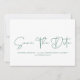 Este moderno, porém elegante, salvará o lançamento da data com um simples fundo branco e um grande script "Salvar a Data" em verde escuro. A parte traseira da placa é vazio para que você possa adicionar mais texto e/ou fotos, se desejar. **TODAS as cores são personalizáveis - cor de fundo, cor do texto, até mesmo cor do script de caligrafia! Basta clicar em "personalizar design mais" no menu suspenso.**