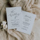 Esta delicada caligrafia negra, tudo num convite de casamento, é perfeita para um casamento moderno. A design romântica minimalista apresenta uma magnífica e elegante tipografia negra num fundo branco com um aspecto simples e limpo. Salve o papel, incluindo os detalhes na parte traseira do convite de casamento, em vez de em um cartão de cercado separado. Inclua as informações de RSVP também se seu convidado estiver respondendo eletronicamente (opcional).
