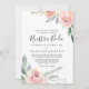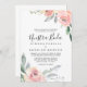 Felicite seu casamento russo espanhol com este convite para o boda das flores de peônia rosa-queda. A design apresenta a aquarela Flores cor-de-rosa com folhas verdes e cinzas.