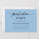 Caligrafia negra moderna minimalista em um fundo azul claro, convite festa de formatura. Convite de formatura simples e elegante.