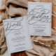 Este quadro de caligrafia romântico, tudo num convite de casamento é perfeito para um casamento simples. O clássico design moderno apresenta espirais ricos e turbilhões brancos com magnífica e elegante tipografia à mão. Salve o papel, incluindo os detalhes na parte traseira do convite de casamento, em vez de em um cartão de cercado separado. Inclua as informações de RSVP também se seu convidado estiver respondendo eletronicamente (opcional).
