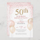 Convites Caligrafia rosa com brilho Surpresa 50º aniversári