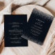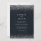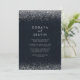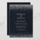 Esta caligrafia de prata e o convite para o casamento é perfeito para um casamento rústico. O design simples e elegante apresenta a tipografia de script clássico e rico com fundo azul e confete prateado. Salve o papel, incluindo mais detalhes na parte traseira do convite em vez de em uma placa de gabinete separada.