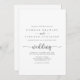 Este convite para casamento de prata e prata de caligrafia é perfeito para um casamento rústico. O design simples e elegante apresenta tipografia de script clássico e rico em prata. Salve o papel, incluindo mais detalhes na parte traseira do convite em vez de em uma placa de gabinete separada.