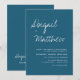 Personalize este Simples Teal Escuro Elegante e Na moda Branco com sua mensagem e detalhes no verso. Este convite minimalista inclui a tipografia da escrita à mão na moda com uma cor moderna para a celebração especial do dia do casamento.
