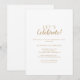 Esta simples caligrafia | o convite de festas de celebração de vamos de ouro é perfeito para um noivado elegante, solteira, reforma ou qualquer evento ou festa. O clássico design apresenta tipografia rústica de branco e ouro com um toque moderno minimalista.