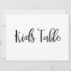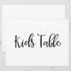 Um simples e belo letreiro de "Mesa das Crianças" para casamentos em caligrafia. Este letreiro feito à mão pode ser usado para adicionar um estilo moderno às recepções de casamento.
