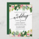 Script De Caligrafia Moderna, Convite De Casamento De Veneração Floral Tropical Watercolor. Verdes.