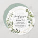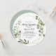 Este convite para o bebê escalado de caligrafia geométrica tropical em ouro é perfeito para um chá de fraldas moderno. A design apresenta lindas folhas verdes pintadas à mão, enfeitando um quadro geométrico dourado.