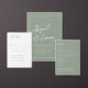 Elementos: linhas limpas, roteiro moderno, foto. Cores: verde-sábio, Temas brancos: moderno, mínimo, minimalista, simples, limpo, contemporâneo, chic, primavera, verão, outono, inverno, neutro, colheita, rústica, vinhedo, boho, moda. Coleção: Simples Sage Verde Calliografia Tipo de Produto de Coleção de Casamentos: Convites de Casamento