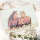 Esta carta de madrinha desbotada por caligrafia balística é perfeita para um casamento moderno. A design apresenta uma tipografia elegante, mas rústica, com duas de suas fotos, uma na frente e outra atrás. Personalize a placa com o nome da noiva e da dama de honra. Personalize a parte traseira do cartão com uma mensagem personalizada.